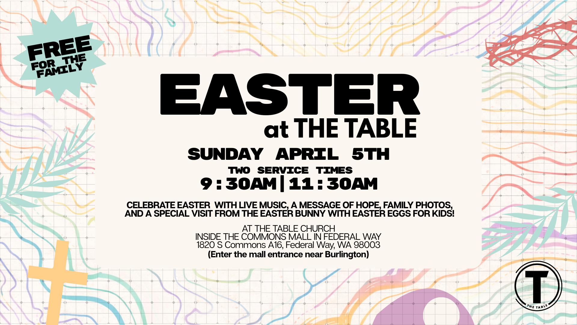 The Table inside The Common Mall 1928 South Commons, Federal WayEaster is a reminder that hope starts with Jesus. Celebrate the joy of Easter with us at The...